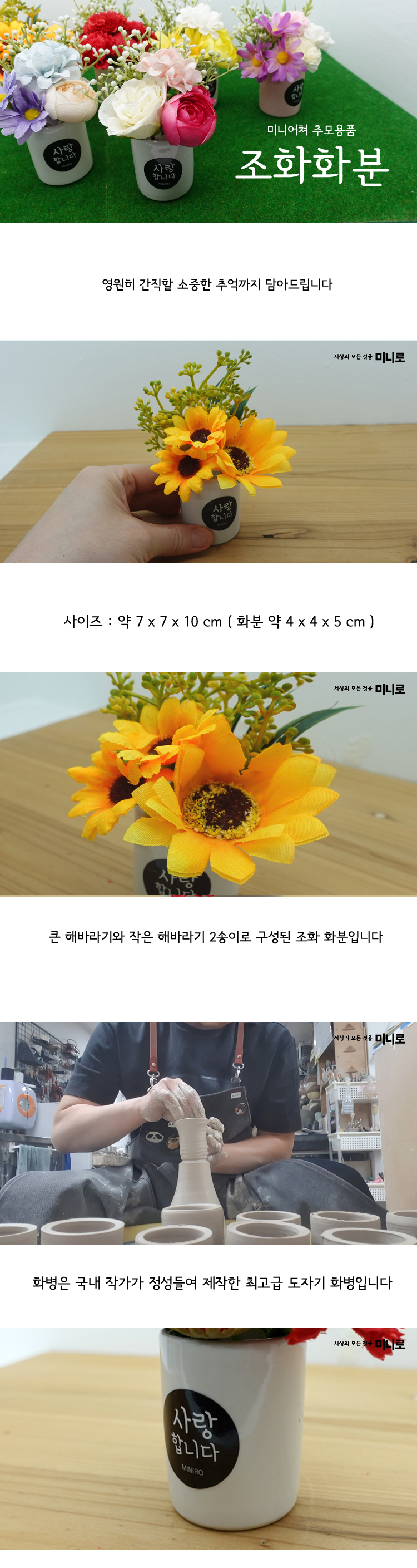 납골당 전용 미니조화 도자기화분 (해바라기)