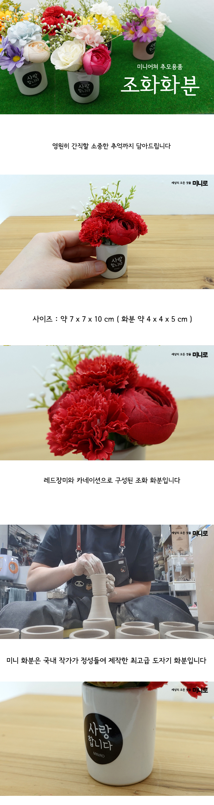 납골당 전용 미니조화 도자기화분 (카네이션)